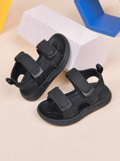 1双男女通用黑色平底可爱凉鞋,软底防滑婴儿沙滩鞋,适合夏季穿着