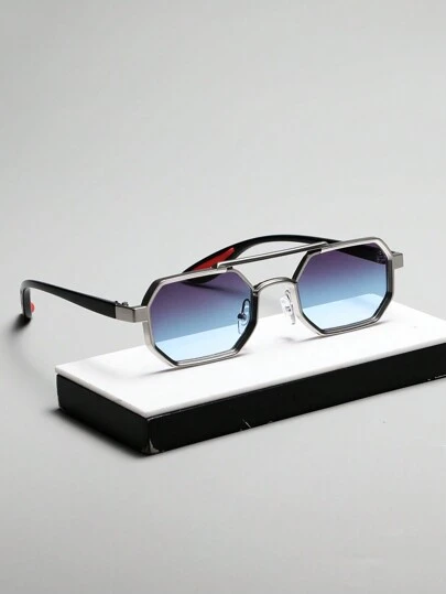 1 副男女通用金属几何框架时尚装饰休闲眼镜,适合夏季海滩度假、户外、旅行返校时尚学院风 - 彩色 - 查看 1