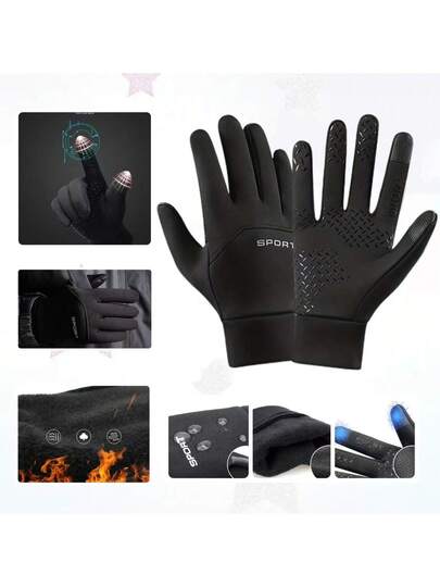 1 双男女通用冬季加厚手套,灰色/黑色抓绒手套,简约时尚设计,户外运动触屏手套,适用于骑行、跑步、钓鱼、滑雪,防风、防水、保暖,防滑硅胶掌面,弹性腕口,反光条增强夜间安全性,柔软舒适的材质,实用、防护、方便。 - 全指 - 查看 1