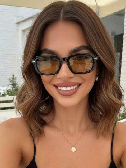 1副女士长方形塑料镜框水钻镶嵌纯色海洋切片复古休闲日常佩戴时尚优雅度假眼镜,适合约会、购物、露营、驾驶、海滩派对等场合。