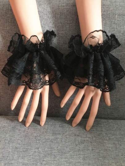1 双女士短款蕾丝袖适合婚礼派对、洛丽塔时尚配饰、服装 - 黑色 - 查看 9
