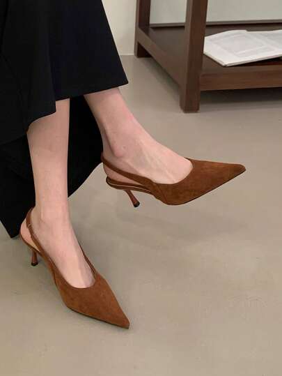1双女士露跟凉鞋,绒面革材质,细跟,优雅款式,适合搭配连衣裙,春夏款 - 咖啡棕 - 查看 1