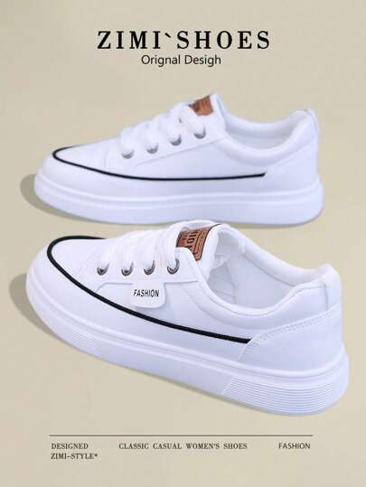 1 双女式白色休闲运动瑜伽平底运动鞋,圆头户外防水系带皮鞋,适合春秋季 - 白色 - 查看 12