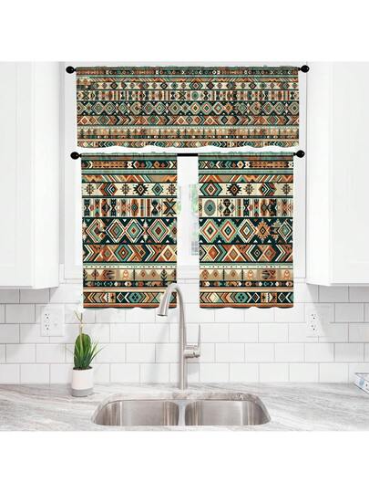 1塊窗簾板/2塊咖啡色窗簾,圖案印花,廚房窗簾,半遮光,元素,公寓裝飾,適用於廚房、宿舍、學習辦公室、客廳家居裝飾 - 幾何圖案 - 查看 7