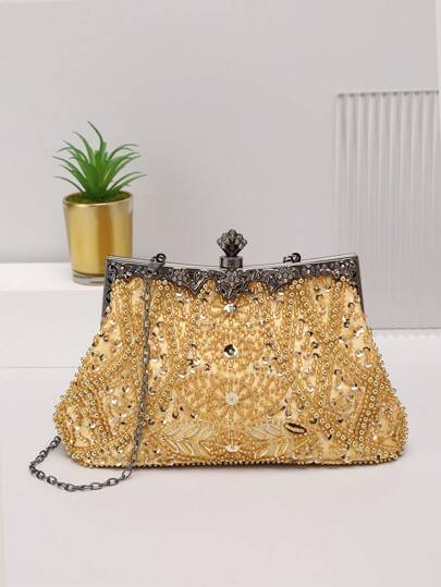 1 件手工重繡金色手持迷你晚宴包適合女士宴會、派對、酒吧、、、、婚禮女孩 - 金色 - 查看 5