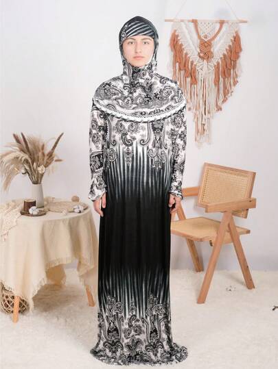 1件装女士宽松舒适印花面纱/头巾,祈祷服饰,适合日常及节日穿着 - A - 查看 15