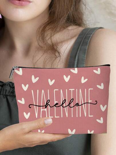 1个粉色爱心图案化妆包,情人节化妆包,送给家人和朋友的完美礼物 - 粉色 - 查看 1