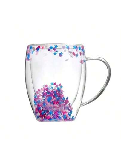 1 件 350ml 创意双层玻璃杯真花海螺闪光灌装玻璃杯手提礼品高硼硅玻璃杯带手柄 - 杏色 - 查看 8
