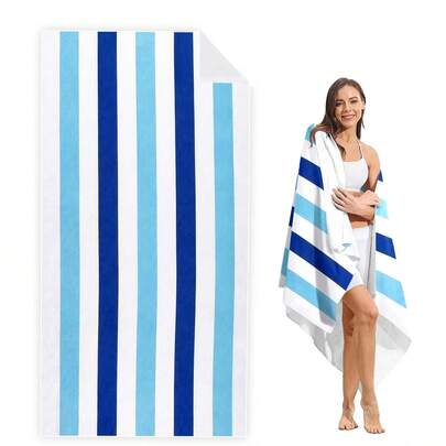 1 件装,多种颜色和尺寸可选。Cabanana 大号超细纤维沙滩巾,防沙,超大尺寸,速干轻便。成人泳池毛巾,条纹泳巾。 - 藍條紋 - 查看 1