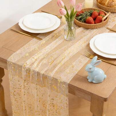 1 件金色薄纱桌旗,闪亮金属箔网状桌布,118/196 英寸闪亮餐桌中心装饰,适用于新娘婚礼、宴会、生日、婴儿派对、圣帕特里克节、周年纪念日、家居装饰、派对等。 - 彩色 - 查看 1
