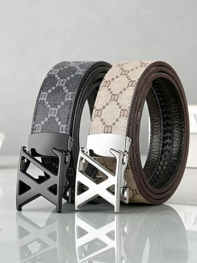 男士字母自动扣皮带(1条装):可调节自动扣设计,适合正式/休闲场合 | 3种颜色(银色/金色/黑色)。可实现精准便捷的尺寸调节。