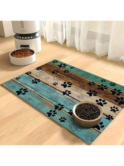 单件装木纹黑色爪印狗狗喂食垫,适用于猫狗等小型动物,经久耐用、防滑、吸水、防污,是猫咪的理想之选——宠物食品和碗垫、家居装饰、厨房地垫、宠物用品