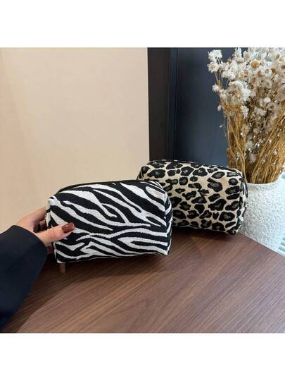 1 件套时尚简约便携式斑马纹、豹纹图案化妆包、书包、笔筒、大容量钱包、旅行洗漱用品、拉链收纳袋、包、化妆刷收纳袋、化妆包、化妆刷、硬币、钥匙和卡片、女士旅行手拿包、秋季、冬季家居装饰、节日礼物、波西米亚风、母亲节、返校 - 彩色 - 查看 1