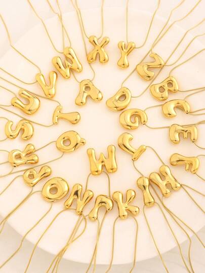 1 件简约时尚不锈钢 26 字母吊坠项链,经典款式,永恒,适合日常/礼物/派对/音乐节 - 金色 - 查看 34