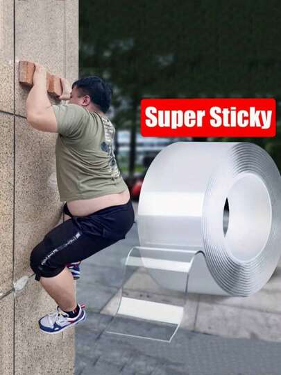1 卷/1 米/3 米纳米双面胶带,透明可重复使用胶带,办公用品,用于清洁厨房和浴室的防水胶带,带玻璃纤维网格的超粘胶带 - 防水透明胶粘剂,适用于万圣节、圣诞节、感恩节、返校 - 無色 - 查看 1