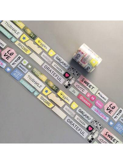 1卷英文字母短语PET装饰胶带,适用于笔记本装饰、剪贴簿、手机壳装饰、水瓶装饰、防水抗撕裂、杂志拼贴、基本英文字母计划器贴纸胶带 - 彩色 - 查看 16