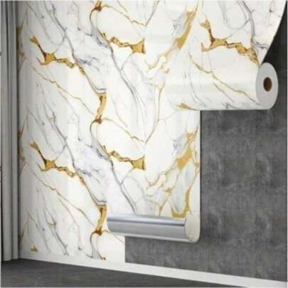 1卷高档大理石纹自粘墙纸,可移除DIY墙贴,防水、防油、易于维护和清洁,适用于厨房、浴室、墙面装饰,现代铂金纹理艺术风格 - 白金 - 查看 7