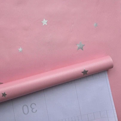 1卷公主粉色星星儿童房壁纸,自粘式家居装饰壁纸,适用于卧室、客厅、餐厅、浴室、办公室,可移除乙烯基接触式壁纸,防水、可水洗、隔音,豪华平面贴纸,方便家居装饰、电视背景墙、橱柜、梳妆台、盥洗柜等。