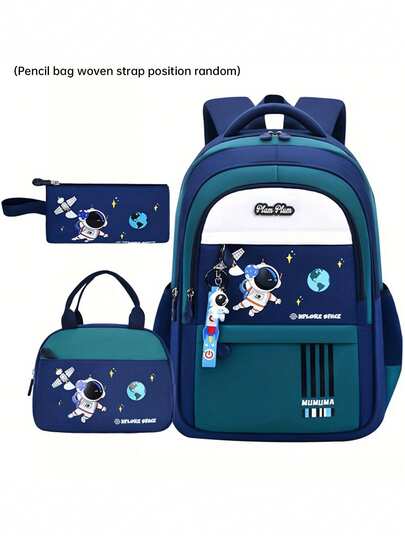 宇航员图案背包套装 - 含午餐盒、铅笔盒,大容量背包,前置拉链口袋,可调节肩带,适合日常使用、通勤、返校礼物