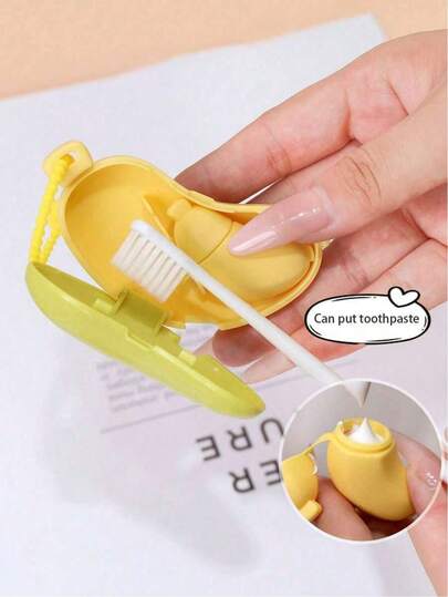 一套可爱香蕉造型牙刷架及旅行收纳盒,二合一迷你便携牙刷保护套,带硅胶牙膏胶囊收纳盒,附赠挂绳,适合商务旅行、酒店、宿舍使用,方便收纳携带,是学生和情侣的理想之选。