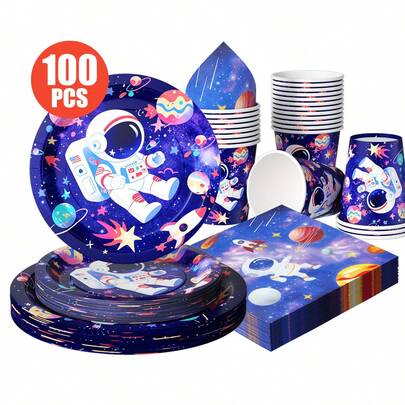 一套一次性宇航员主题餐盘、餐巾纸、纸杯,适合25位客人使用,一次性纸盘,派对用品,适用于生日、婚礼、主题派对、家庭野餐。 - 彩色 - 查看 5
