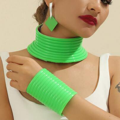 一套手工皮革首饰套装,时尚PU皮革项链、手链、耳环,波西米亚风格,适合派对、度假、非洲风情、中东风情、东南亚风情等场合。 - 綠色 - 查看 1