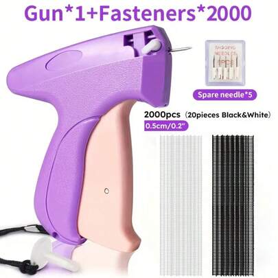 一套高品质便携式细针标签枪,畅销跨境套装,多功能标签枪,适用于服装、袜子等,方便耐用,附赠1000枚固定针(500枚黑色和500枚白色),适合自用或送礼。