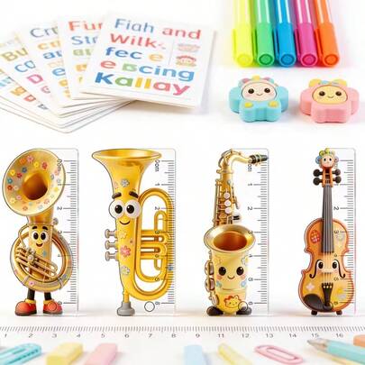 一套仪器造型尺,配有串珠链,透明便携式口袋尺/掌尺,可爱卡通文具,可挂在背包或铅笔盒上,非常方便的测量工具,返校礼物,完美的学习用品礼物