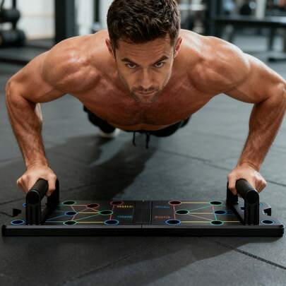 一套多功能折叠式俯卧撑板,14根以上不同颜色的俯卧撑杆,全身力量训练器材,适用于胸肌、肱三头肌、肩部、背部,适合家庭、健身房、户外、旅行,适合初学者到高级用户,男女皆宜。 - 彩色 - 查看 5