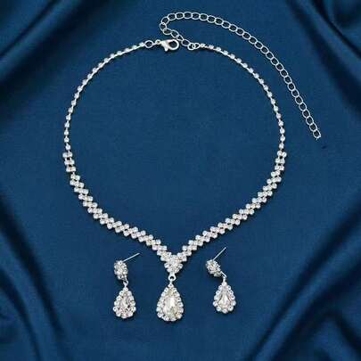 一套闪亮水晶首饰套装,时尚简约优雅的项链和耳环套装,适合搭配晚礼服、婚礼、生日派对、舞会等场合。 - 銀色 - 查看 1