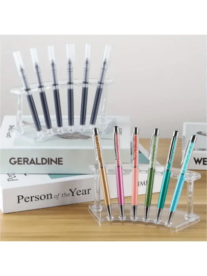 1 套透明塑料笔筒,多用途 6 槽铅笔展示架,眉笔展示架,化妆刷架,收纳整理器,适用于家庭、办公室、商店和工艺品展示 - 透明 - 查看 10