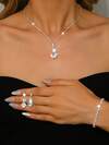 新娘闪耀首饰套装,圆形水晶吊坠项链+水滴耳环+手链,正式婚礼/毕业礼物