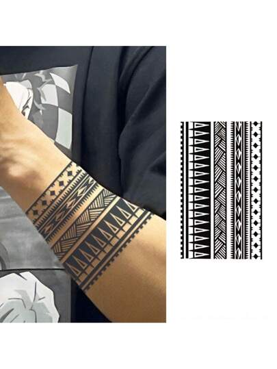 1 张臂章背部防水持久临时纹身 - 黑色 - 查看 3