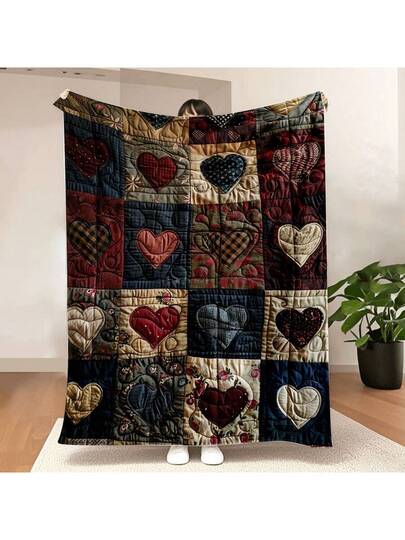 1 条柔软法兰绒心形印花毯 - 轻便,便携,适合旅行、露营、办公室、海滩使用 - 舒适的米色混色设计,旅行舒适装备 | 拼布被子 | 耐用舒适 - 彩色 - 查看 12