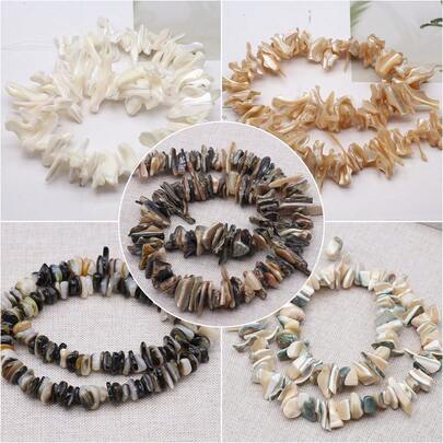 1串天然淡水贝壳串珠不规则散珠,用于珠宝制作DIY男女项链手链工艺品配件 - 彩色 - 查看 5