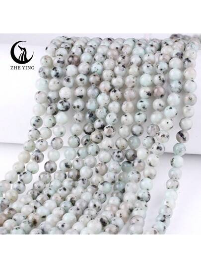 Zhe Ying 1條6/8/10mm天然石材治療晶體奇異果碧玉石珠串,總長度38cm,適用於diy珠寶製作 - 奇異果碧玉 - 查看 1