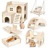 木制仓鼠秋千跷跷板屋,小型别墅式躲藏巢穴玩具,适用于仓鼠、沙鼠、鹦鹉,宠物运动玩具套装