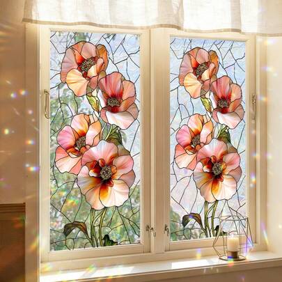 1/3片彩色玻璃窗隐私膜,彩色花朵静电吸附隔热防紫外线门贴,无胶彩虹棱镜贴纸,适用于家庭办公室卧室浴室装饰
