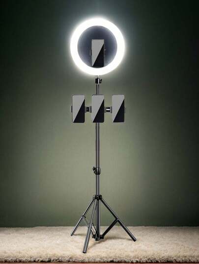 10吋環形燈配43吋可伸縮三腳架,4個手機定位夾LED燈環配手機架,適用於直播/化妝/影片製作/所有手機相容 - 黑色 - 查看 1
