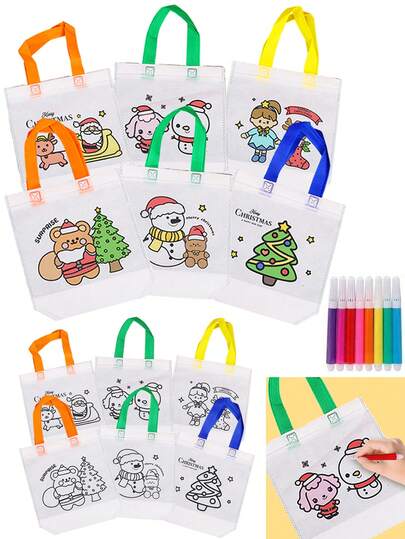 10/15/20/30个/套 圣诞主题随机DIY涂鸦袋,附赠彩色马克笔,无纺布绘画礼品袋,艺术工艺涂色绘画袋,活动排队礼品袋,送给家人和朋友的礼物 - 聖誕節A款 - 查看 2
