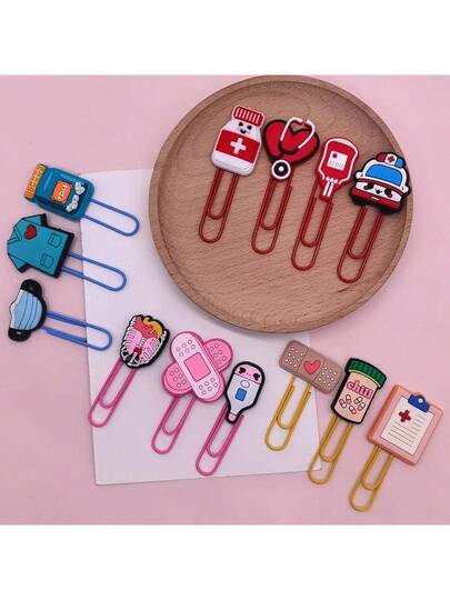 10/20/30个卡通医用回形针,创意可爱书签,彩色活页夹,DIY材料,医生护士记号笔夹,适用于办公室和书房,生日礼物,节日礼物 - 彩色 - 查看 12