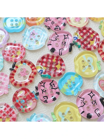 10/20 件可爱印花透明彩色苹果形 4 孔纽扣,DIY 缝纫纽扣,服装装饰纽扣,手机壳,手机带,发饰 - 彩色 - 查看 22