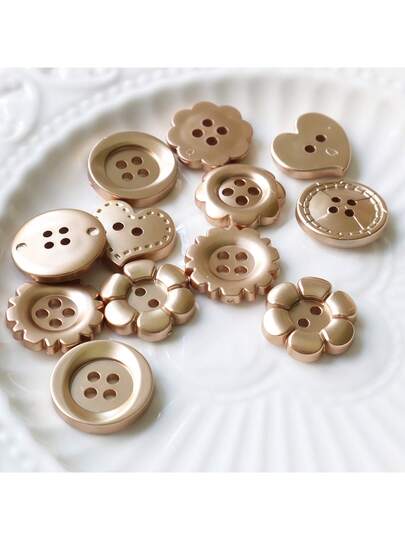 10/20 件金色 4 孔多功能圆形扣,心形花边纽扣,针织开衫衬衫缝纫纽扣 DIY 珠宝配件 - 彩色 - 查看 10