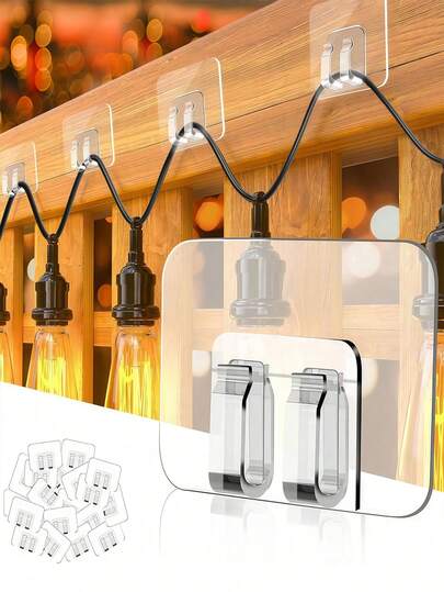10/30/50个装防水、防紫外线、免工具安装户外灯夹,带粘胶条 - 无损安装,适用于庭院、花园、阳台装饰、灯具悬挂,防水粘胶夹,可用于悬挂圣诞灯 - 户外防紫外线透明粘胶线夹 - 全年11个节日的完美礼物,理想的节日礼品 - 彩色 - 查看 12