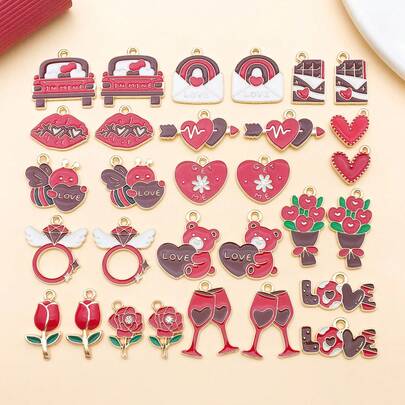 10/30件合金吊坠套装 – 珐琅心形和小熊吊坠,可用于DIY手工手链、项链和耳环 – 非常适合情人节、周年纪念日或任何特殊场合 - 紅色 - 查看 26