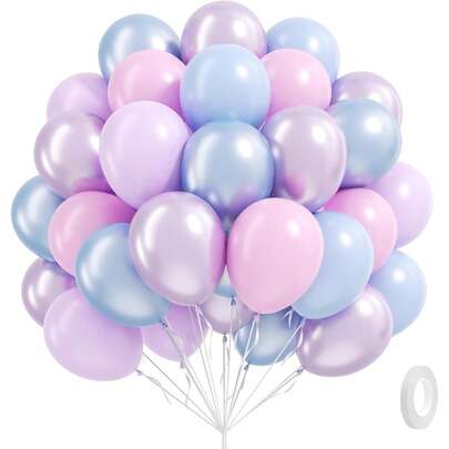 10英寸珍珠粉和蓝紫色气球,冰雪奇缘美人鱼女王气球,搭配柔和色调气球,适合美人鱼、雪花主题的迎婴派对、生日派对、庆祝派对装饰。