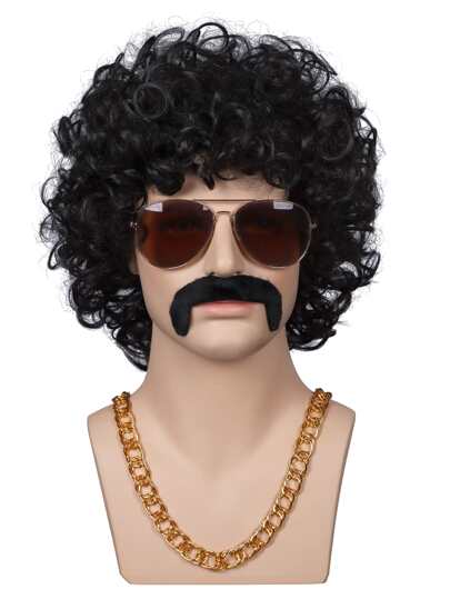 10 英寸短黑色捲髮男士耐熱合成假髮適合日常派對使用或迪斯科嬉皮搖滾 70 年代主題派對和萬聖節搖滾重金屬 70 年代 1970 年代服裝假髮 - 黑色 - 查看 1