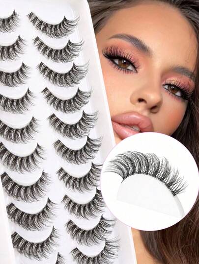 10对猫眼假睫毛,柔软浓密,3D立体水貂毛睫毛,纤长纤长,根根分明,凌乱多层,短款浓密假睫毛,嫁接假睫毛,化妆用假睫毛,6-14毫米 - 黑色 - 查看 1