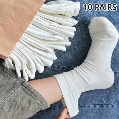 10双装女士简约休闲白色柔软圆领袜,舒适透气街头风设计,适合日常穿着,四季皆宜。 - 彩色 - 查看 1