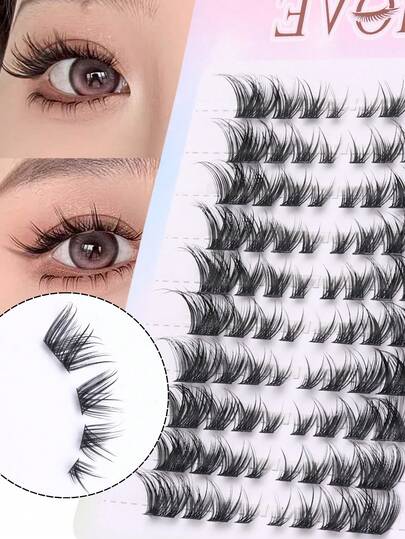 10排曼加纤细分段假睫毛 慵懒自嫁接浓密8-15mm斜飞眼尾假睫毛 轻盈透气单簇自嫁接3D立体浓密卷翘 派对必备DIY新手必备睫毛化妆品